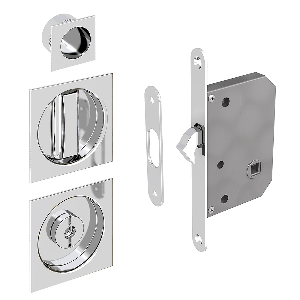 Kit cerradura con bloqueo, tirador redondo, acero acabado satinado